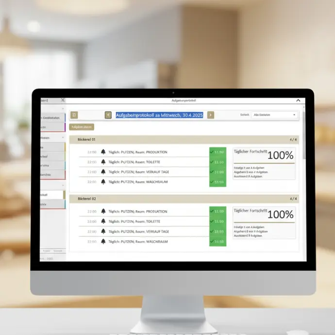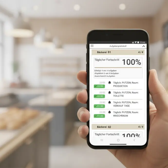 Z uporabo digitalnih obrazcev, pametnih termometrov in tiskalnikov nalepk se vsak korak priprave hrane natančno zabeleži – od merjenja temperature do označevanja posod za hrambo.