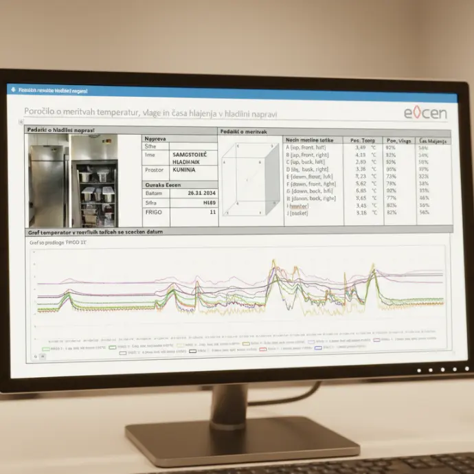 Sistem opozori na morebitna odstopanja ter zagotavlja sledljivost meritev pri pripravi, ohlajanju ali termični obdelavi hrane.